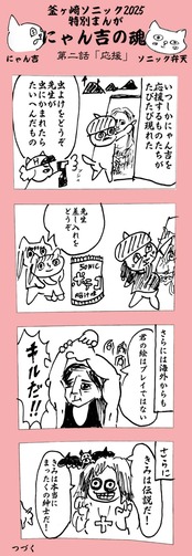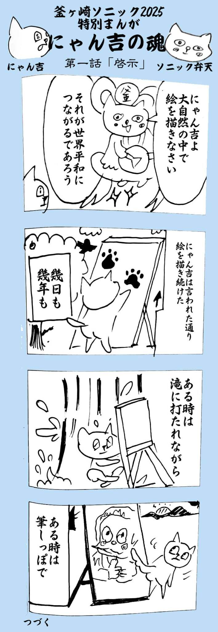 釜ヶ崎ソニック公式キャラクター「にゃん吉」は大自然の中で絵を描き、世界平和を目指すのだ。
